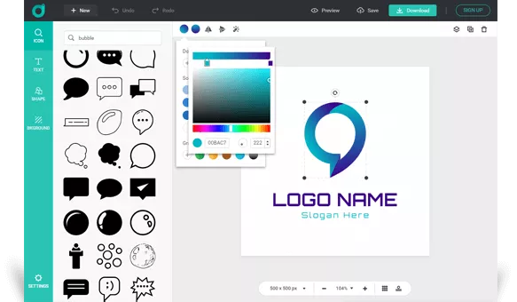 The gradient colors are commonly used in logo design. Adding gradient effects on your logo will definitely make it eye-catching and stand out from the others. And it is easy to make a gradient logo with our simple logo maker, since any color transition can be completed only by a few clicks.