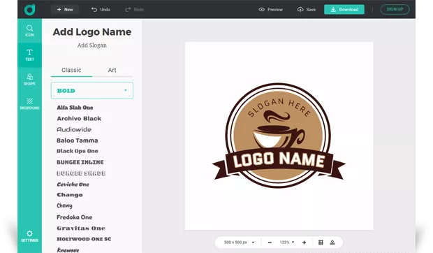 Logos with fonts that look handwritten are more popular than ever! If you are looking for a handwriting font for your logo design, look no further. DesignEvo offers dozens of script fonts like Pacifico and Sacramento. Using these fonts for your logo design will make it look personal as if it is signed by hand.