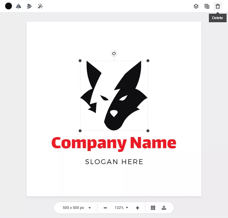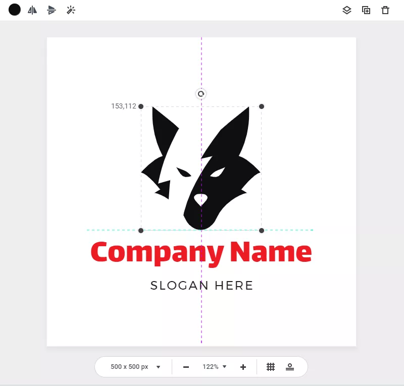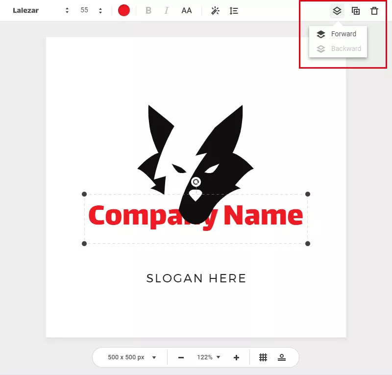 DesignEvo allows you to move layer to avoid any objects being covered on the canvas. To achieve that, select the object you want to adjust and click the layer button on the top toolbar to move it forward or backward.