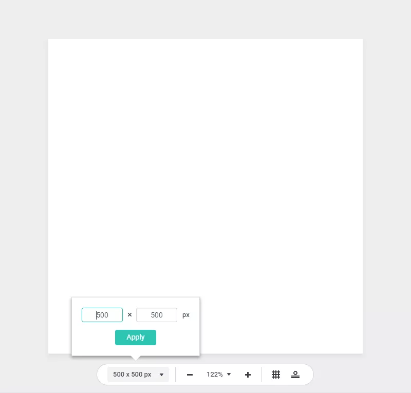 The default size of the canvas is 500*500 px, and it can be resized between 35px to 2000px by clicking the settings bar below the canvas.