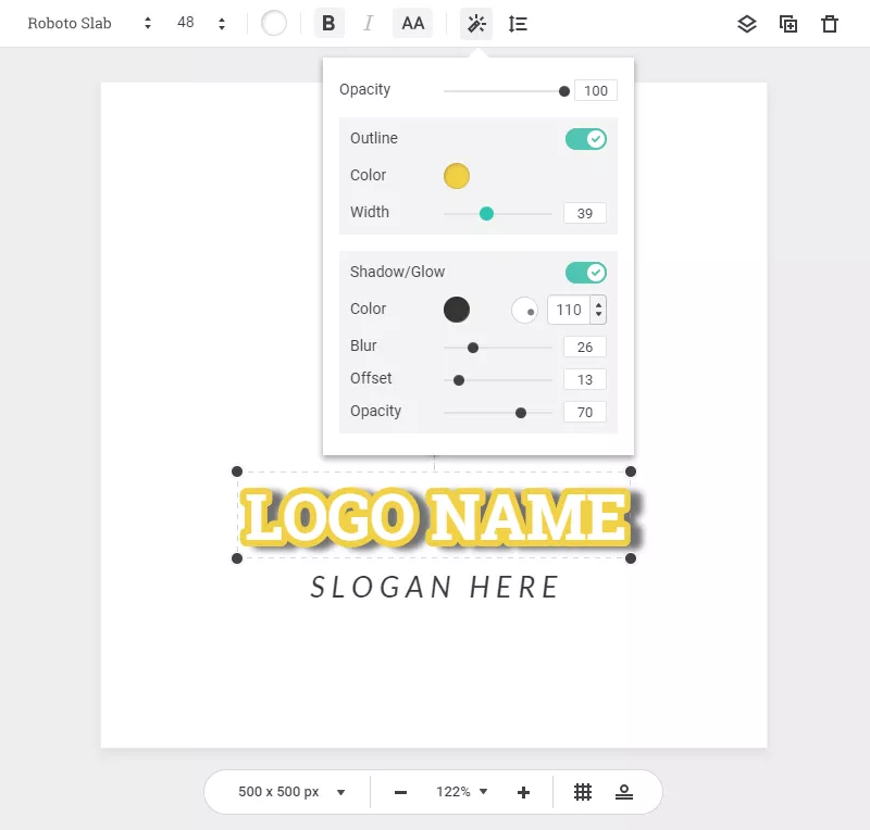 3. Check the Shadow/Glow box, and then drag the sliders to adjust the blur, offset, and opacity properties respectively.
