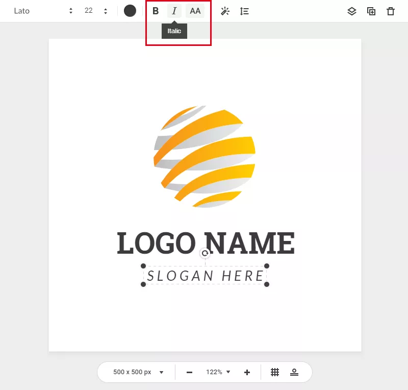 Click the Bold, Italic, or Uppercase button to make your text bold, italicize, or change your text to uppercase or lowercase with one click.