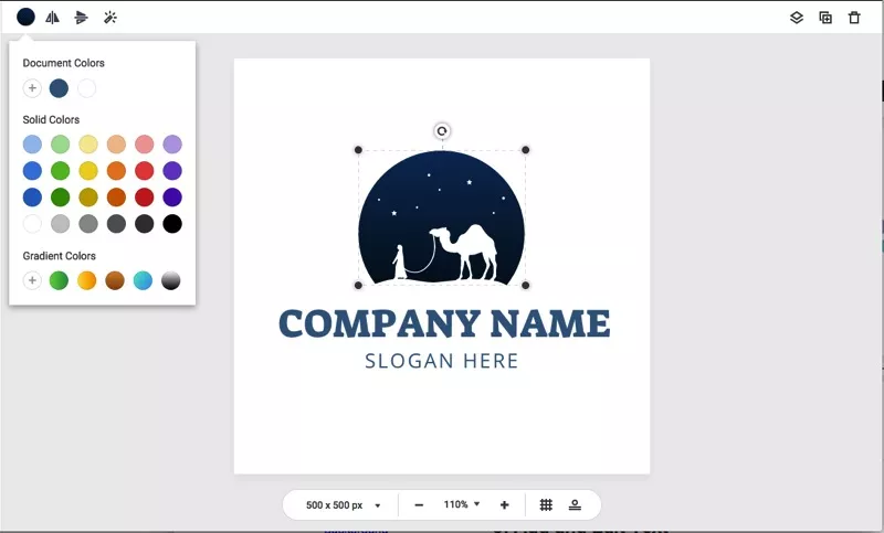 Select an object and the editor toolbar would appear on the top. You can adjust the color, opacity, or flip it horizontally or vertically.