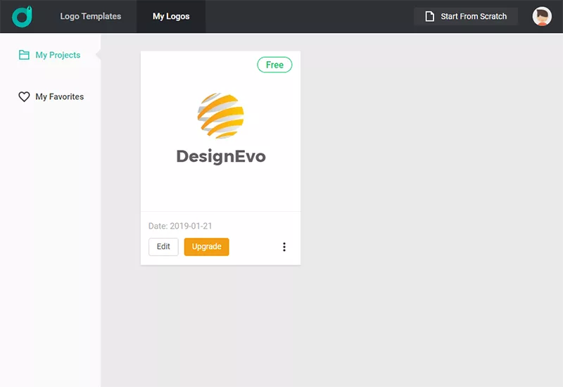 All saved logos are listed in “My Logos” panel. You can continue editing or upgrade them.